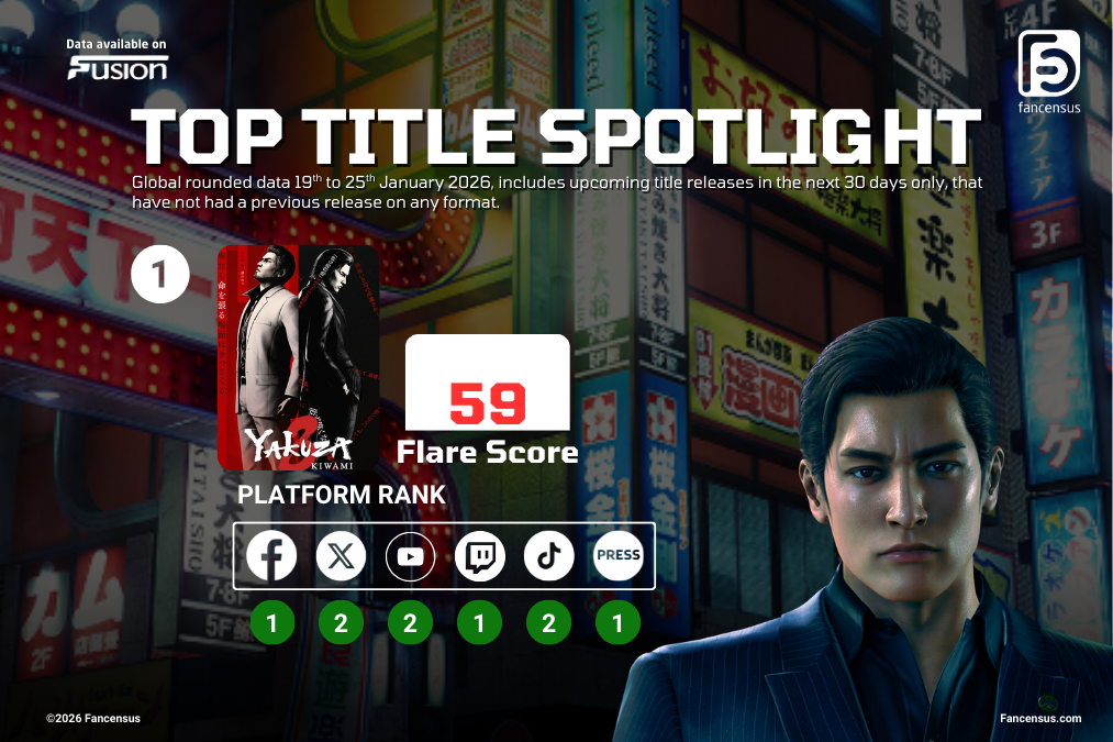 Flare Score is Fancensus’ proprietary metric that summarises how strongly a game is performing across key visibility channels, normalised to a scale of 0–100. More specifically, Flare looks at multiple quantitative and qualitative signals from areas such as press coverage, social media activity, and retailer/storefront discoverability into a single comparable score.
